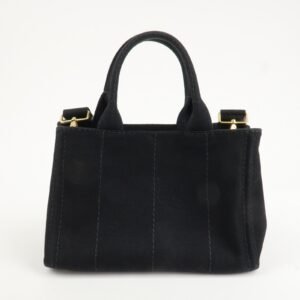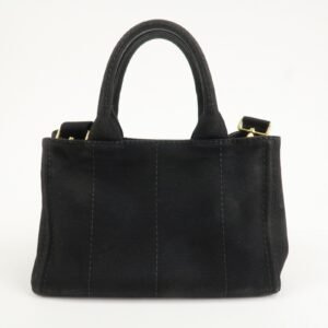 PRADA Canapa Mini Canvas 2Way Hand Bag Tote Bag Black 1BG439 Used