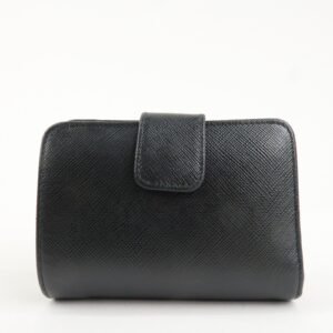 PRADA Saffiano Leather Bi-Fold Wallet Black Red Gold 1ML018 Used