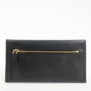 PRADA Saffiano Leather Envelope Flap Long Wallet Black 1M1175 Used