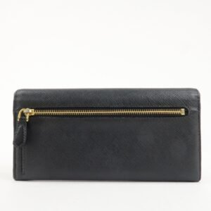 PRADA Saffiano Leather Flap Bi-Fold Long Wallet Black Gold 1MH132 Used