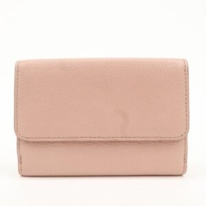 MIU MIU Leather Double Hook Bi-fold Wallet Pink Gold Hardware Used