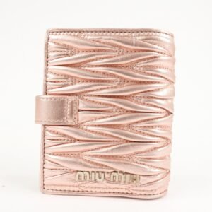 MIU MIU Matelasse Leather Bi-fold Wallet Metalic Pink 5MV016 Used
