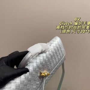 • Intrecciato leather top handle clutch with metallic knot closure