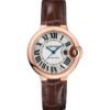 Ballon Bleu de Cartier watch, 33 mm, self-winding mechanical movement. Steel case, 18K pink gold bezel, fluted 18K pink gold crown set with a synthetic cabochon-shaped spinel. 12-zone silvered flinque guilloche dial with sunray effect. Blued-steel sword-shaped hands. Sapphire crystal. 18K pink gold and steel bracelet. Wrist size: 170 mm.