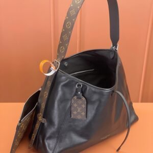 A standout accessory from the Spring-Summer 2024, the CarryAll Dark MM handbag features a cool, super-slouchy silhouette – a bold complement to the season’s looks. The ultra-soft lambskin has a touchable, slightly “rumpled” aspect, beautifully set off by polished palladium-finish hardware. A pleasure to carry, this capacious piece easily accommodates a day’s essentials.