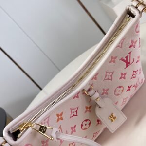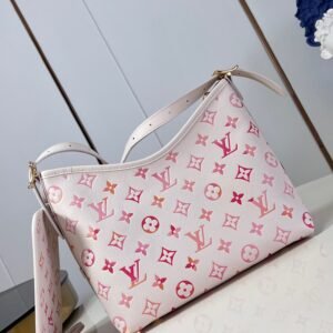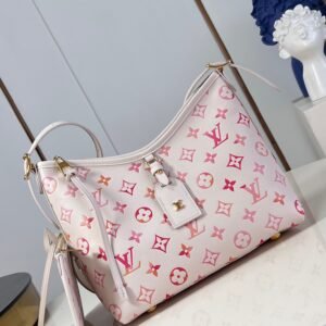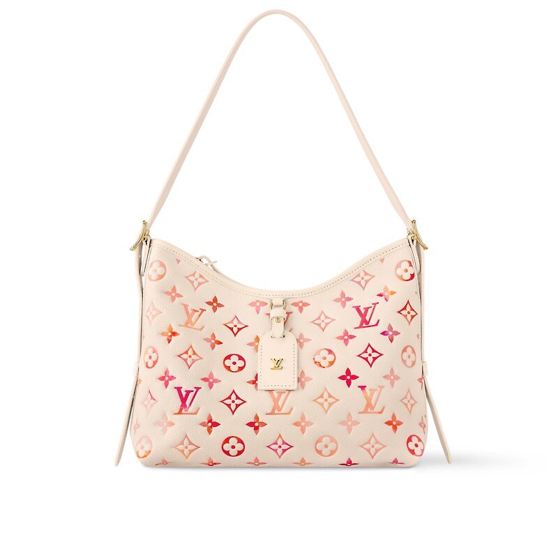 The CarryAll PM’s supple design is even more body-friendly in Monogram Empreinte leather. The sunrise colorway of the Monogram print – orange, pink and fuchsia – brings an optimistic feel; an effect amplified by the gradient “watercolor” aspect of the LVs and Monogram Flowers. A removable and adjustable strap enable comfortable shoulder carry.