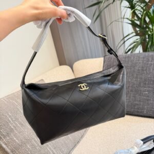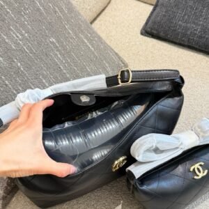 🖤The Chanel 26P black and gold lunchbox bag features classic black lambskin with a gold double C logo and a vintage quilted pattern that exudes quality.✨ The hobo style has a detachable chain shoulder strap, making it versatile for hand-carrying, shoulder-carrying, or crossbody wear. It’s perfect for everyday commutes or casual outings! The small size is just the right capacity, easily holding your phone, wallet, and cosmetics. Practical and stylish, it’s a super popular item in the 26P series and definitely worth buying!