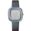 Coussin de Cartier watch, small model, quartz movement. 18K white gold (750/1000) case, dial and crown set with 313 brilliant-cut diamonds totaling 2.67 carats. Case dimensions: 27.1 x 27.7 mm, thickness: 7.0 mm. Case set with 66 spinels, rhodiumized white gold-finish steel sword-shaped hands, black calfskin strap, rhodiumized 18K white gold (750/1000) ardillon buckle set with 21 brilliant-cut diamonds totaling 0.21 carat. Water-resistant up to 3 bar (approx. 30 meters/100 feet).