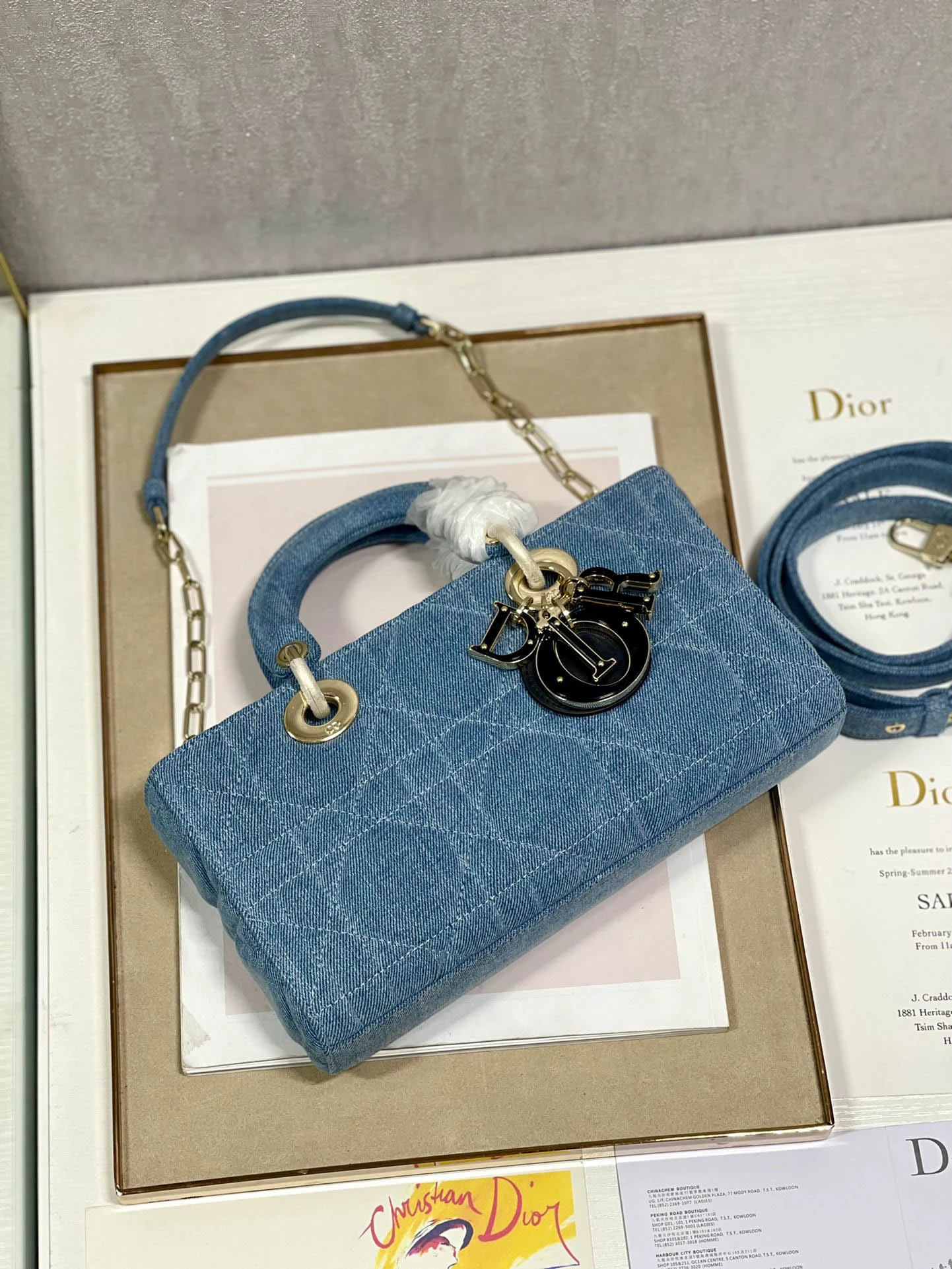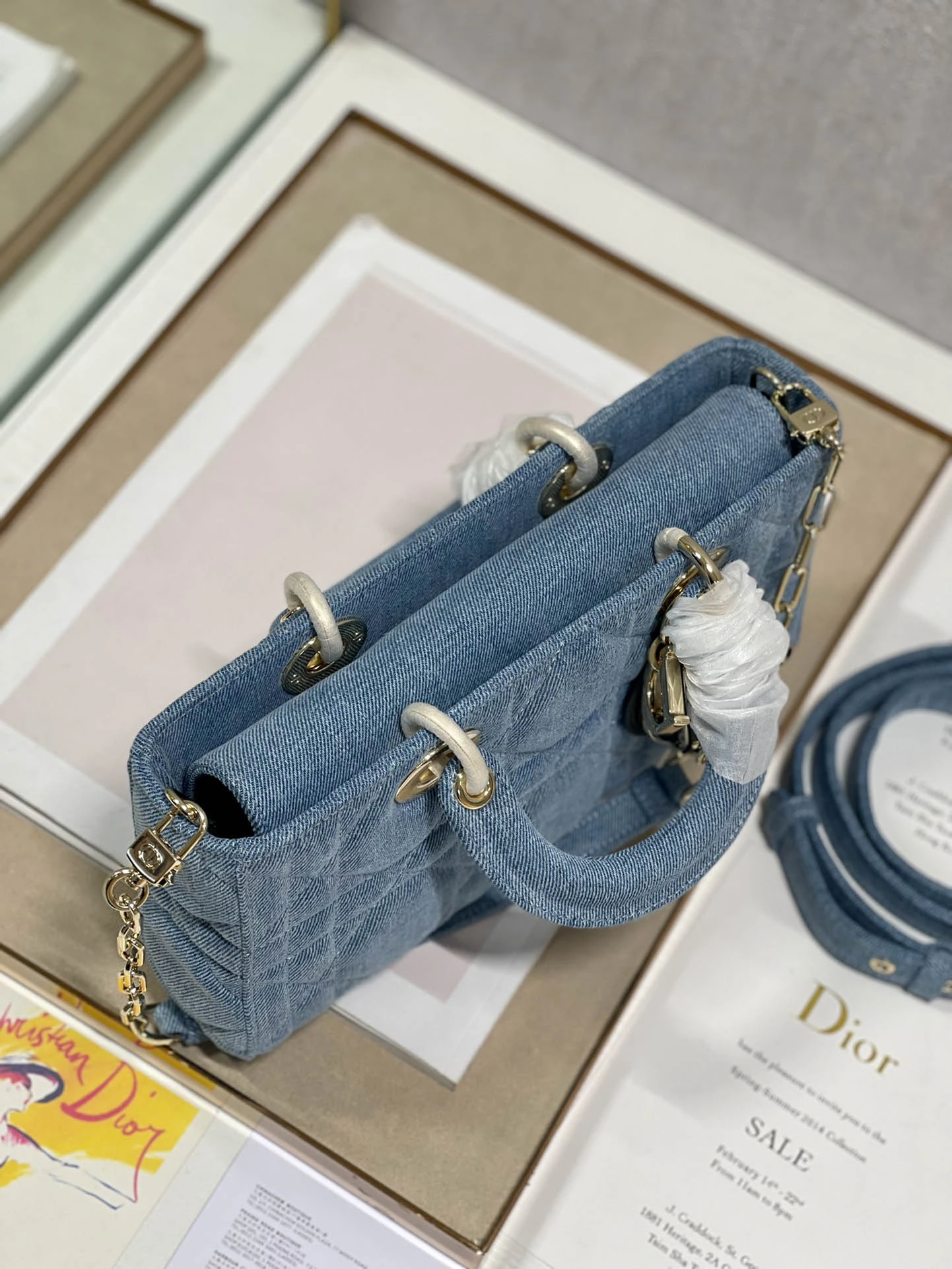 Dark blue leather shoulder strap 原价为:$704.00。当前价格为:$252.00。