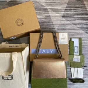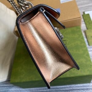 Sliding chain strap can be worn as a shoulder strap with 23″ drop or can be worn as a top handle with 12.5″ drop