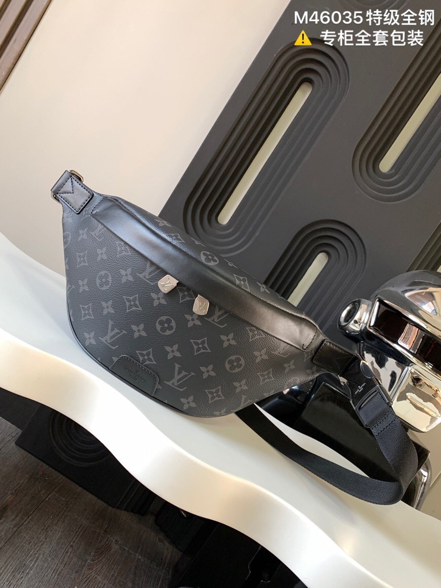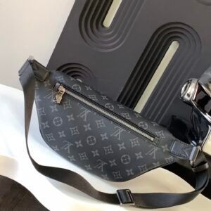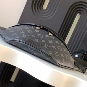 Crafted from Monogram Eclipse canvas, the Discovery bumbag offers the ideal mix of casual chic and modern functionality. With a body-friendly shape and adjustable belt, it can be worn around the waist, over the shoulder or slung stylishly across the chest. Zipped pockets, front and back, provide easy access to phone, cards and keys.