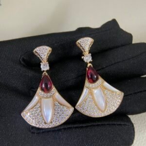 A refined expression of joyful femininity, the Divas’ Dream 18 kt rose gold earrings offer an elegant and colourful interpretation of the iconic fan-shaped motif. Deeply rooted in Bvlgari’s Roman heritage, the aesthetic signature of the collection is embellished with pavé diamonds and mother-of-pearl inlays, artfully cut to fit the intricate design, while two pear-shaped rubellites top the gemstone mosaic. Evoking the image of a blooming flower, the creation is an ode to timeless beauty.