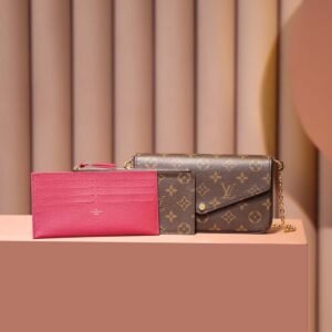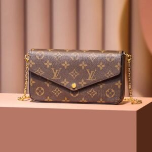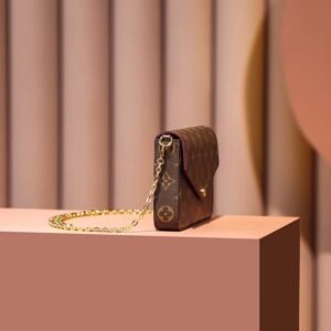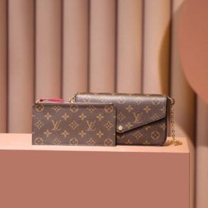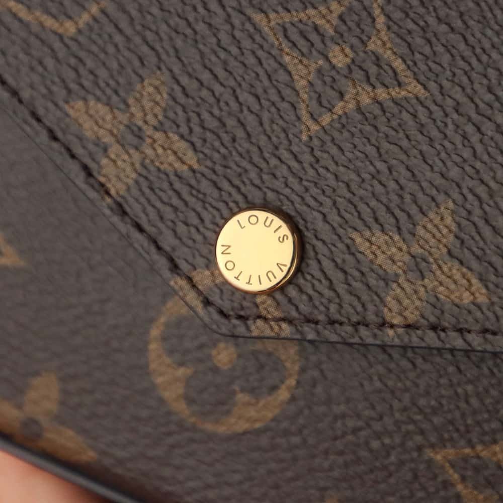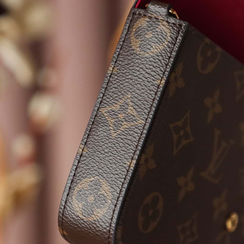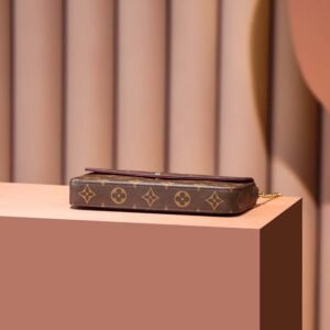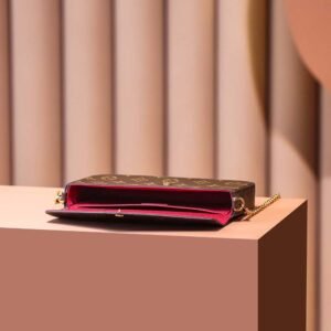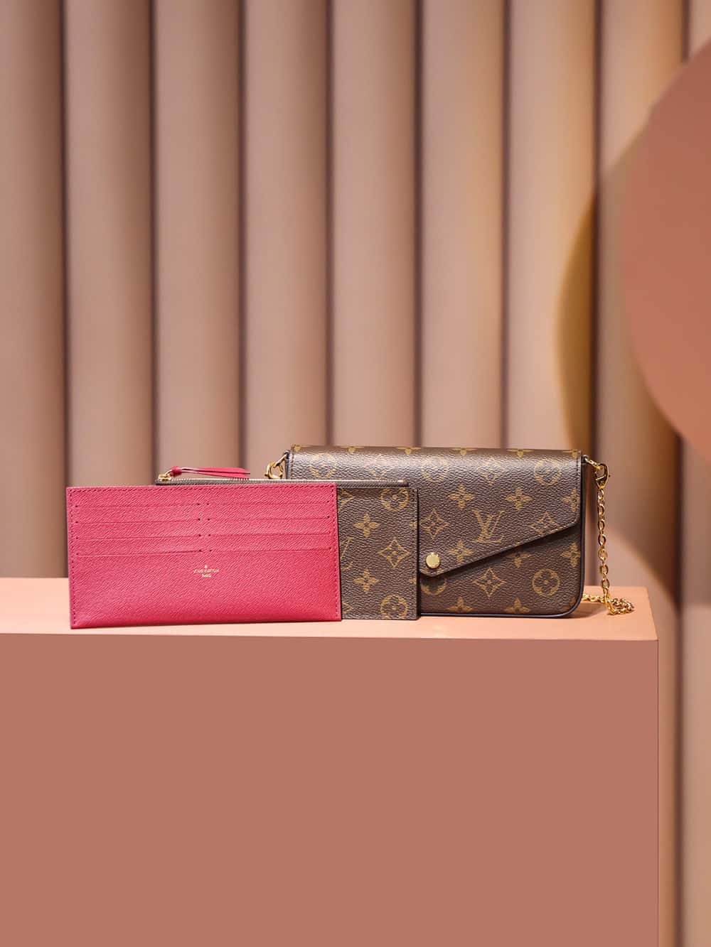 The versatile Félicie Pochette flap pouch is fashioned from Monogram canvas and lined in fuchsia microfiber. Inside there are two removable pockets: a zipped pocket and a flat pocket with eight card slots. The removable gold-color metallic chain enables shoulder and cross-body carry. The Félicie closes with a press-stud.