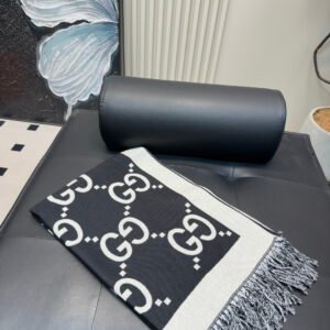 GG cashmere lamé jacquard scarf black