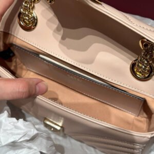 Sliding chain strap can be worn as a shoulder strap with 55cm drop or can be worn as a top handle with 30cm drop. Can also be worn cross body.