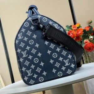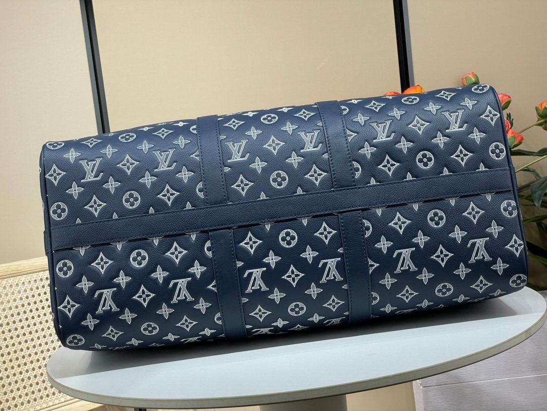 Monogram Shadow calfskin gives this Keepall Bandoulière 50 travel bag a sporty feel. The Monogram pattern is first embossed into the soft calfskin, and then the motif is printed on top in a contrasting color. The process gives depth to the design. The roomy Keepall 50 can be taken onto the plane as carry-on luggage.