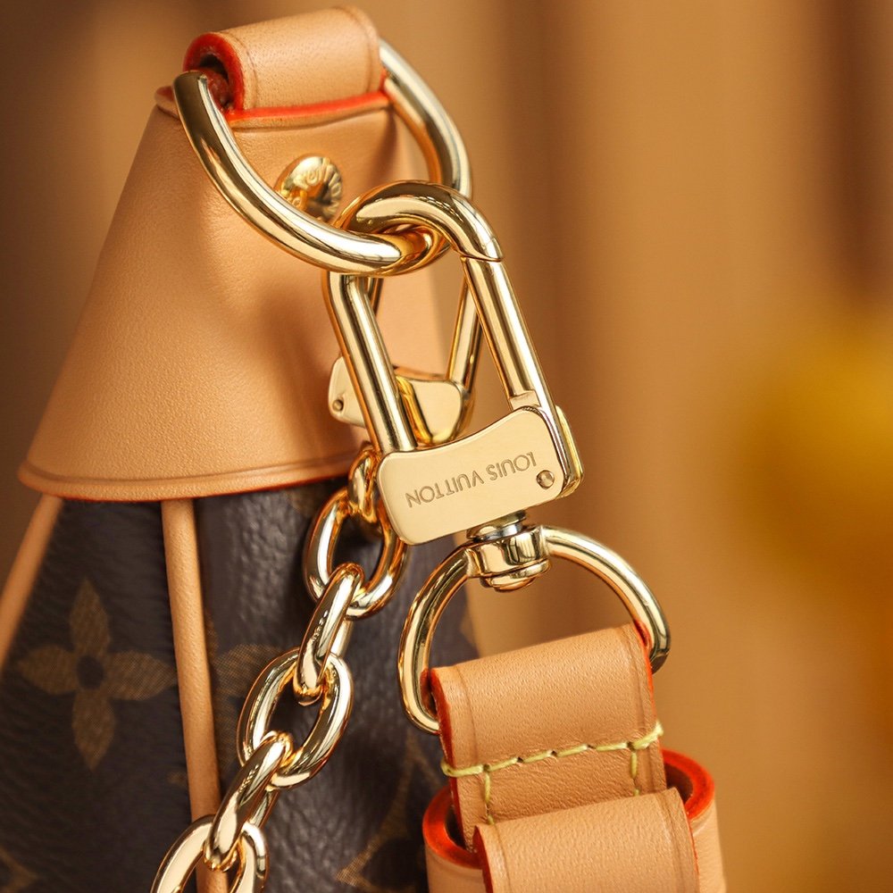Created by Nicolas Ghesquière for the Cruise 2022 Collection, the Loop handbag features a half-moon silhouette, inspired by the Croissant bag from the House archives. It has a body-friendly, compact shape and a chain for shoulder carry, as well as a cross-body leather strap. The front zip pocket closes with an LV Circle zip pull.
