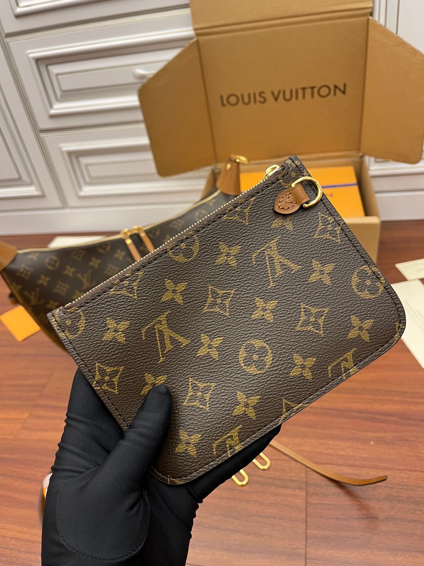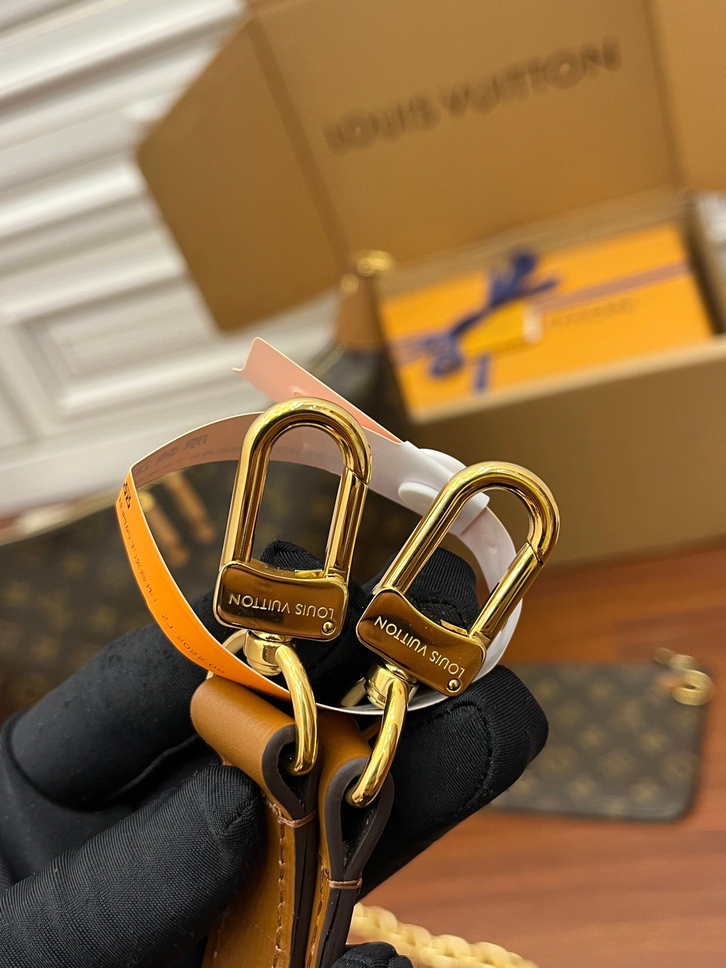 - Gold-color hardware