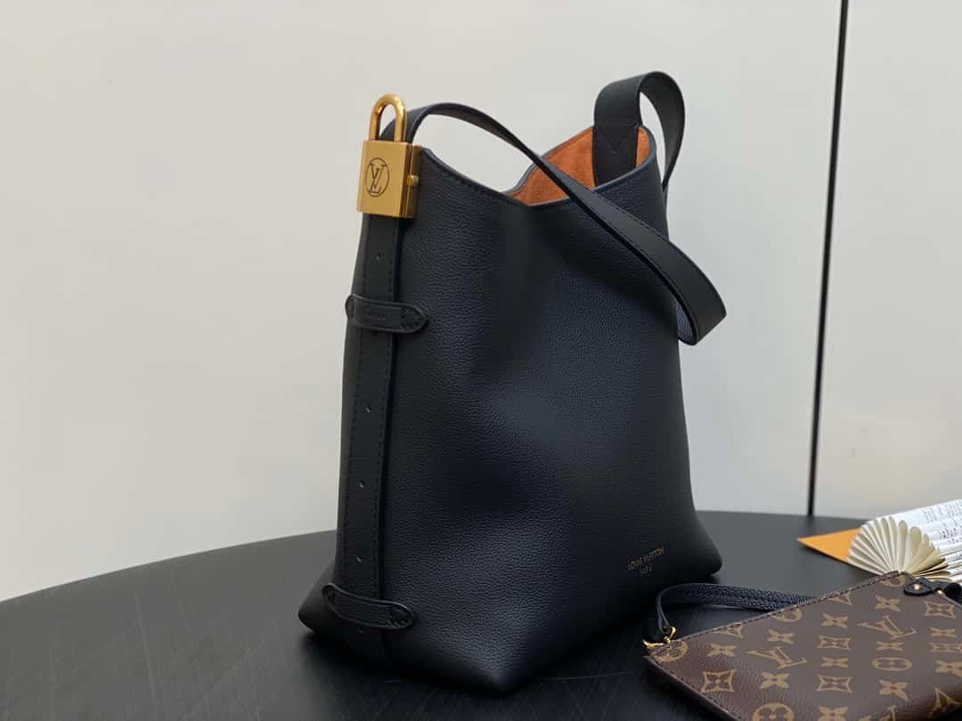 The supple Low Key Hobo PM bag is made from smooth calfskin with suede-calfskin lining. Its unique design includes a single strap that adjusts with a padlock buckle. The interior includes a removable zipped pouch in Monogram canvas to keep things organized. This bag can fit a compact wallet, large smartphone, keys, and other smaller belongings.