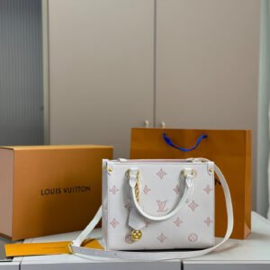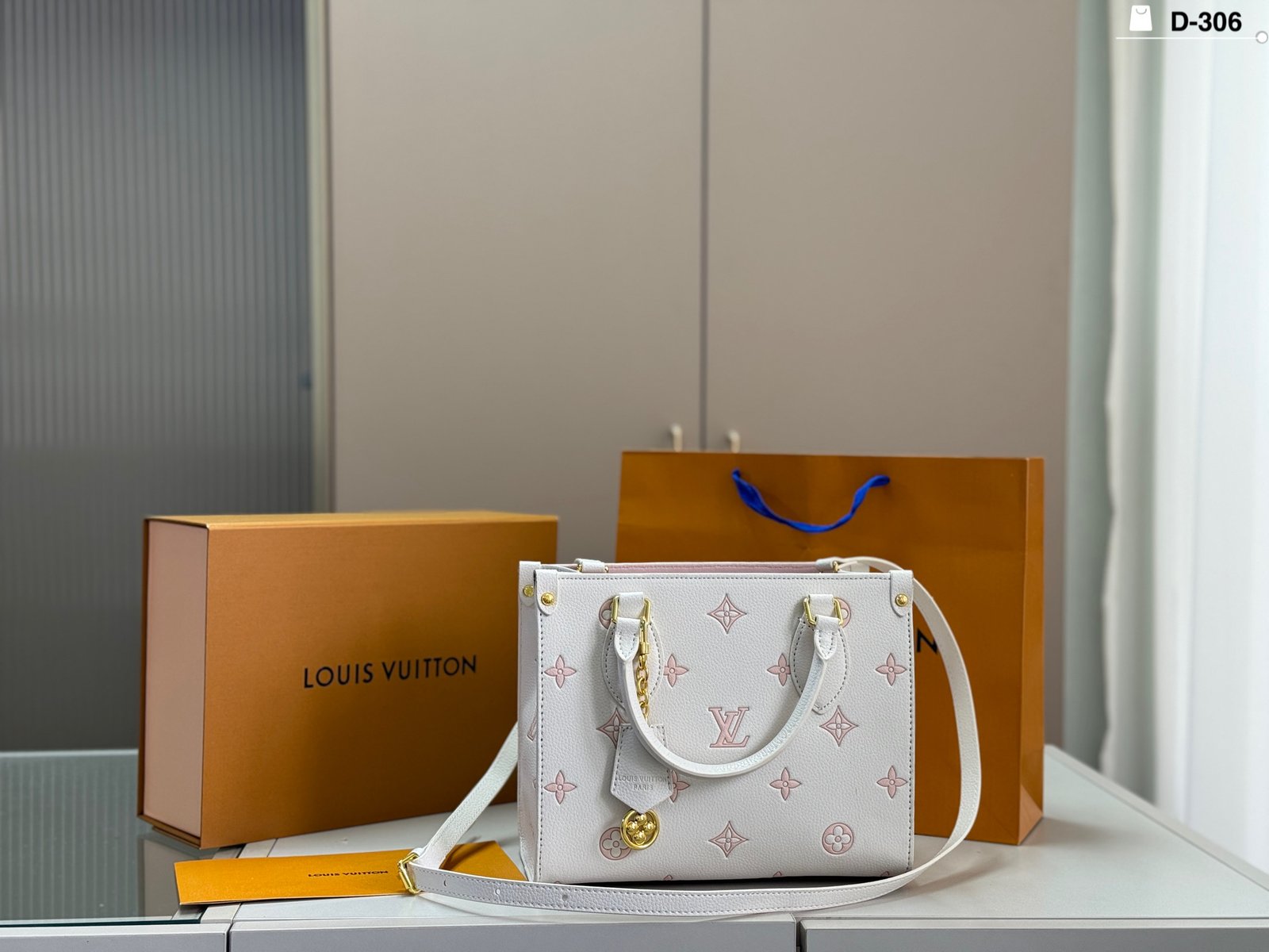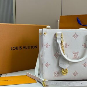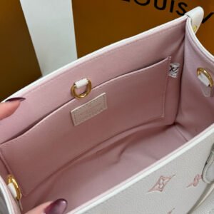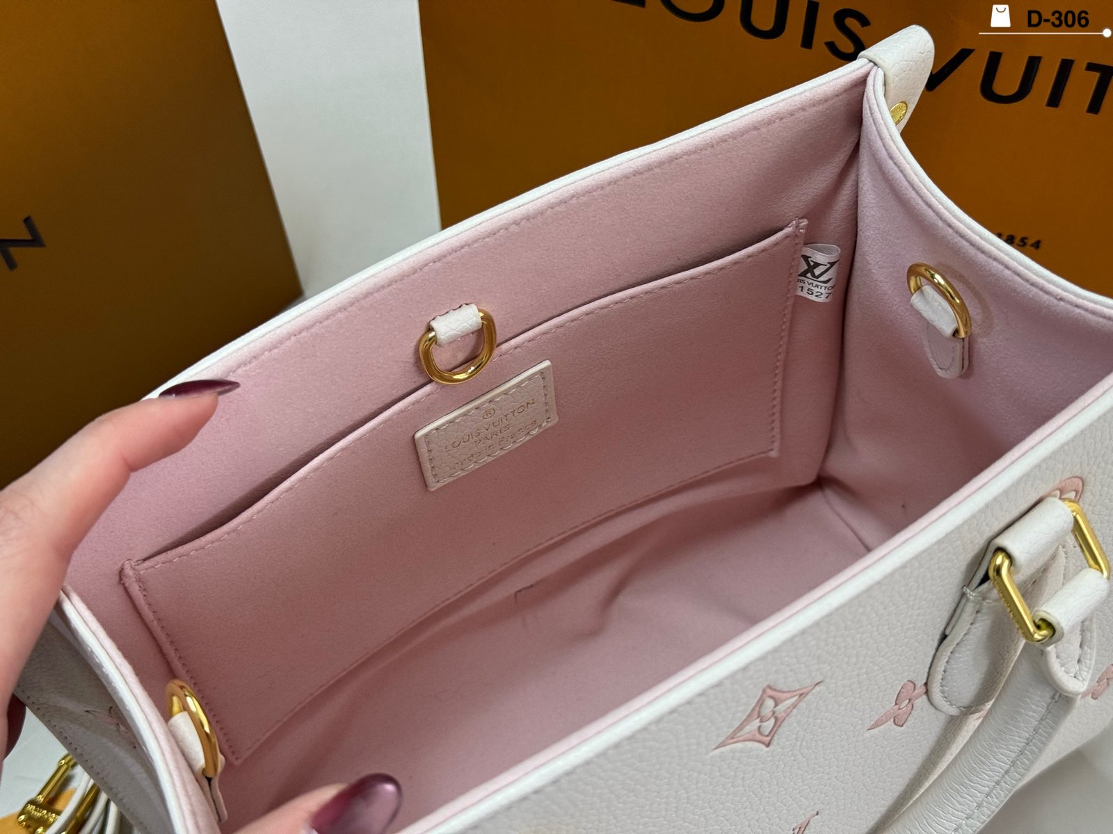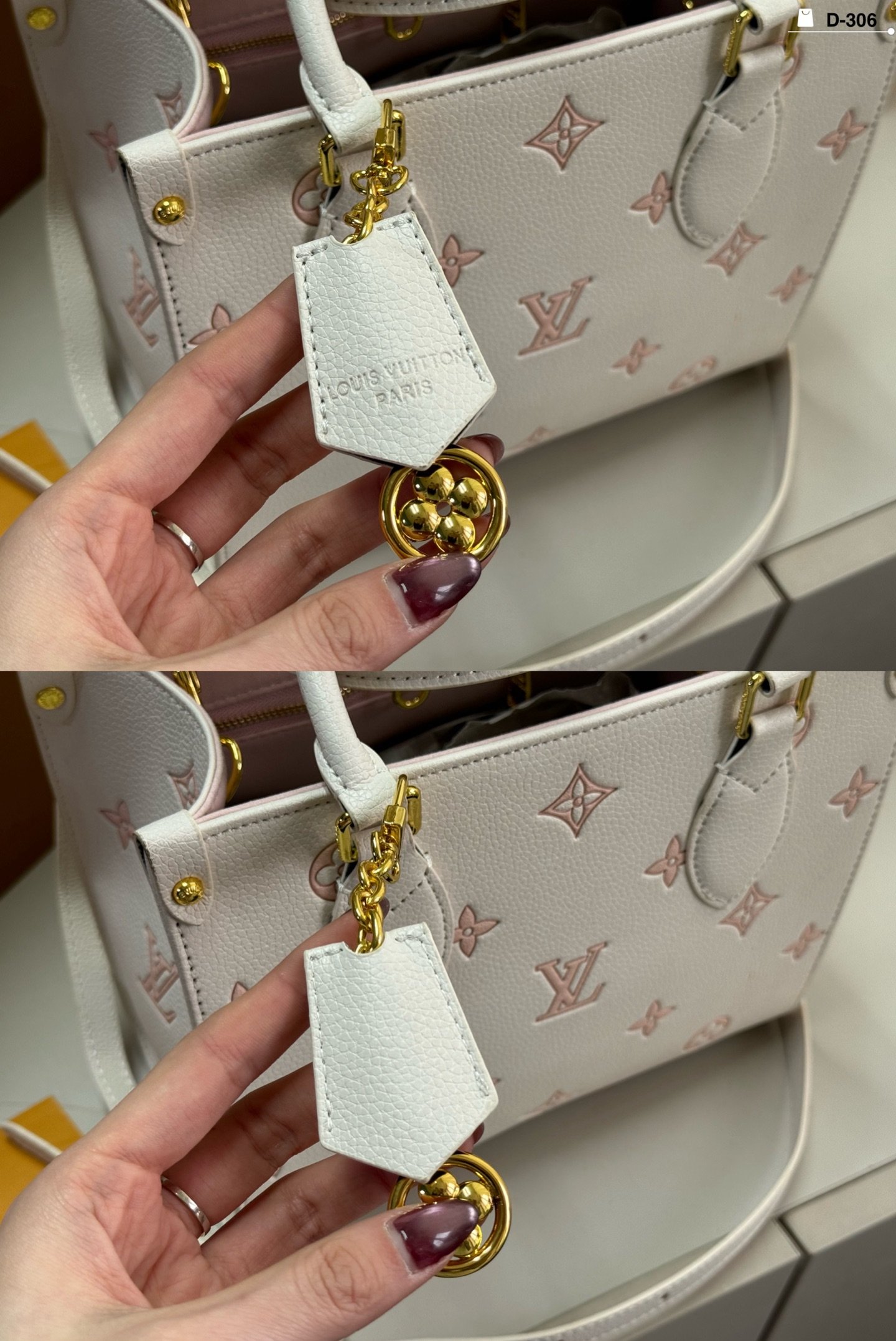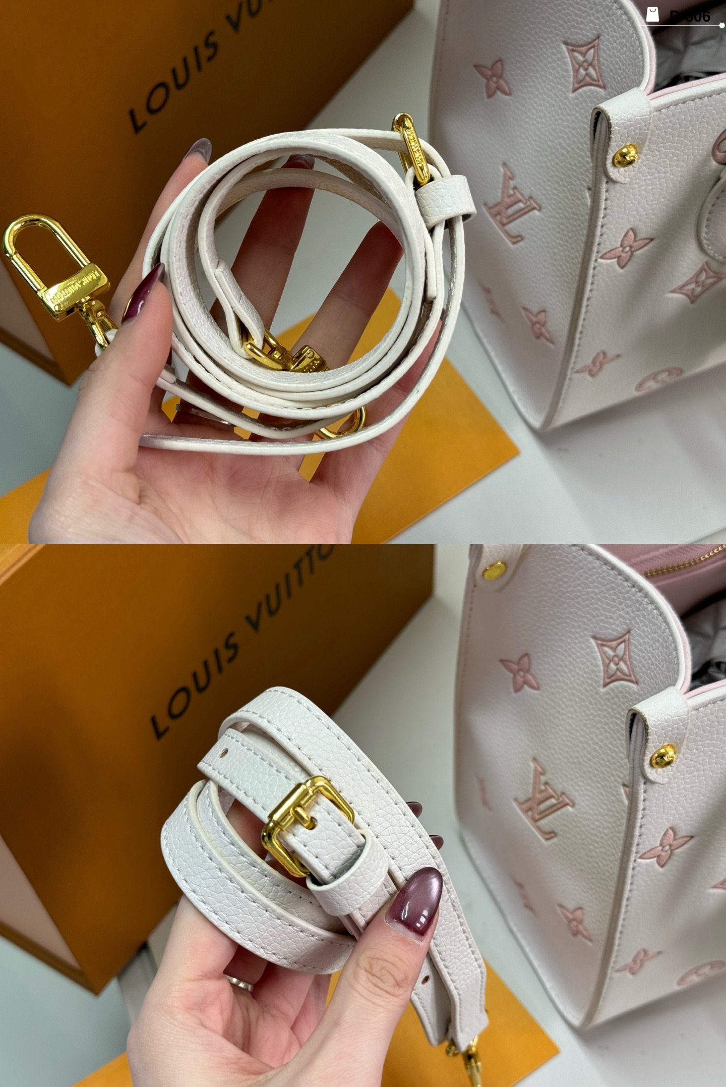 LV Onthego Tote Bag, super sweet strawberry cream color scheme! Creamy white embossed calfskin + pink Monogram monogram, light gold hardware, fresh and elegant ✨