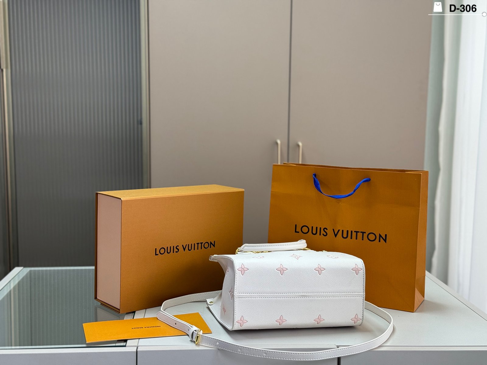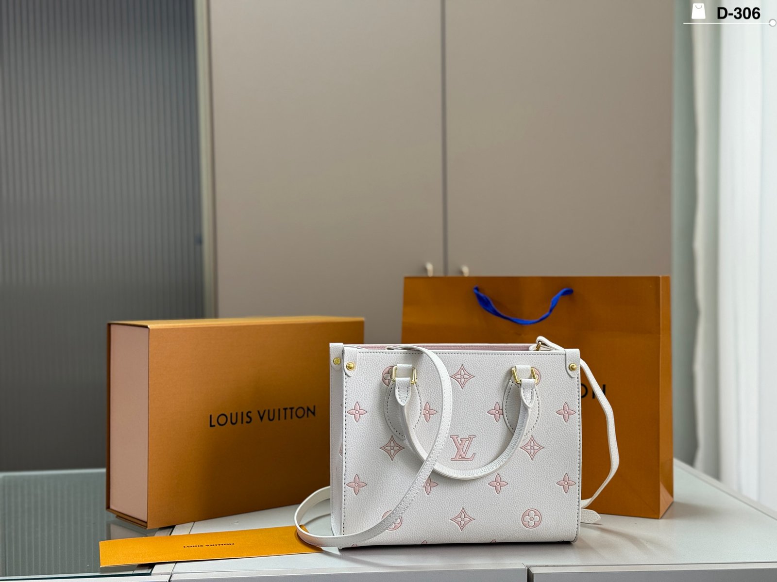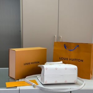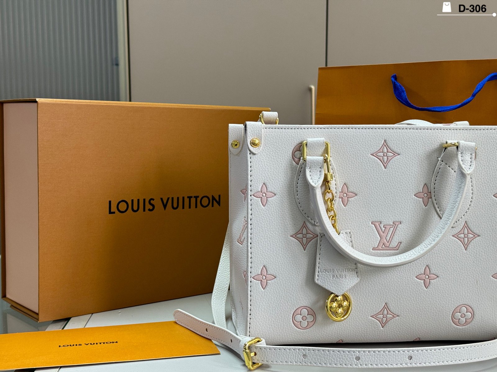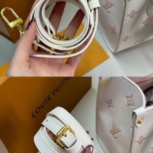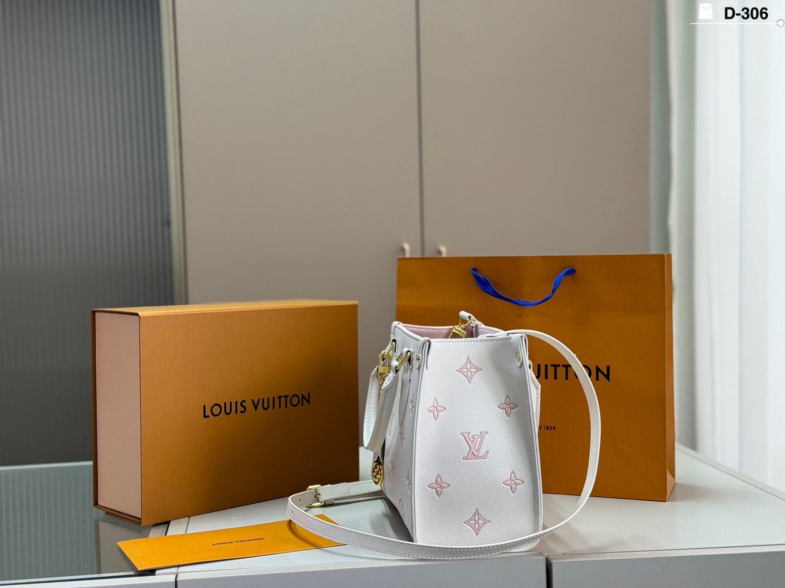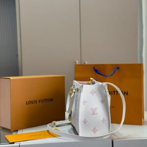LV Onthego Tote Bag, super sweet strawberry cream color scheme! Creamy white embossed calfskin + pink Monogram monogram, light gold hardware, fresh and elegant ✨