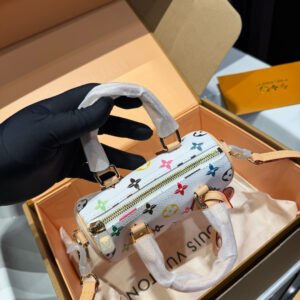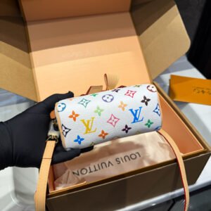 This collaboration with Takashi Uehara truly evokes a vintage charm reminiscent of the 2000s, seamlessly blending modern and past chic with a clever 1930s Art Deco style. Monogram coated canvas renders the playful spirit of Uehara.