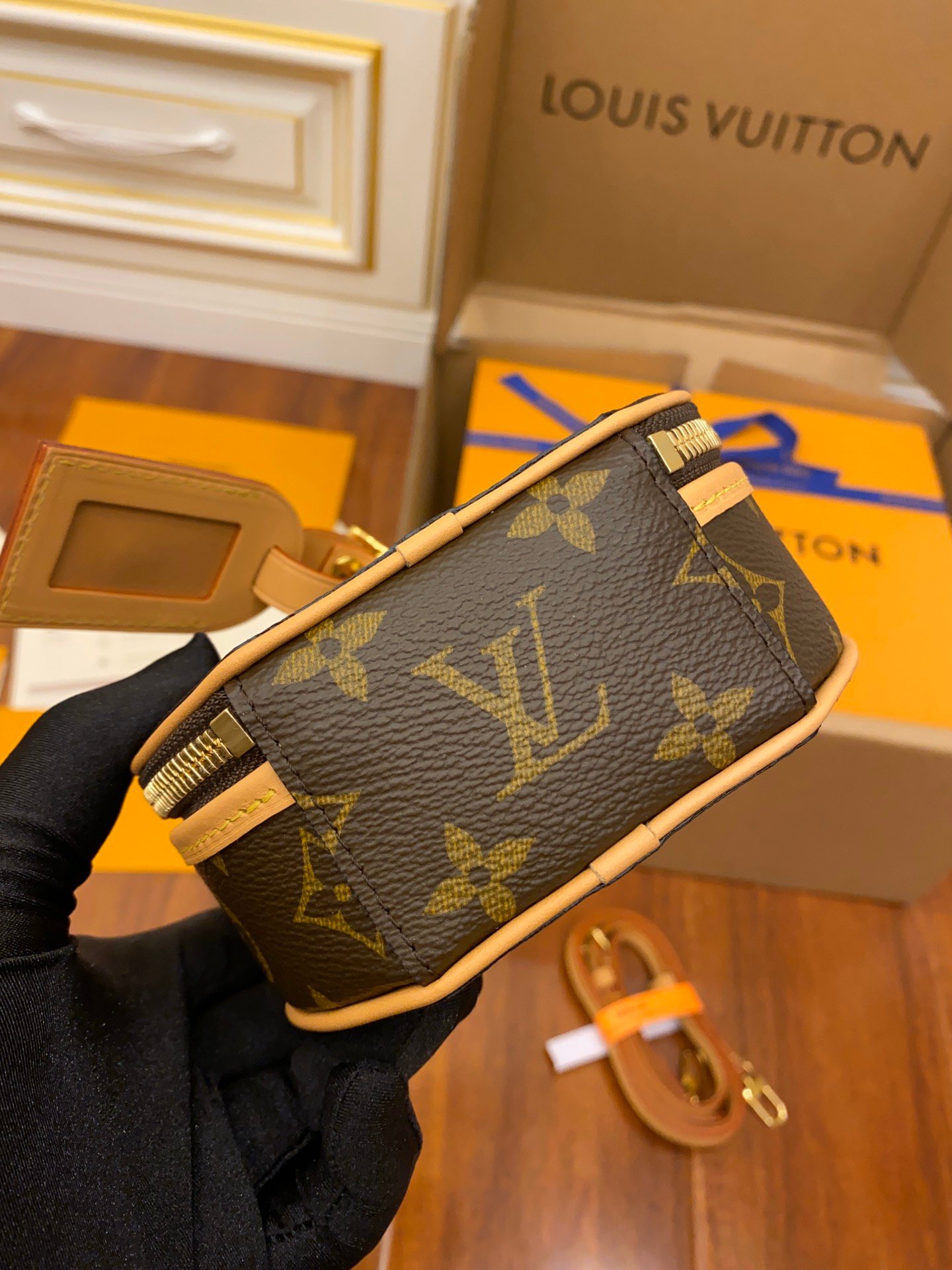 Fashioned from Monogram canvas, the Mini Boîte Chapeau delights with its iconic shape and classic Louis Vuitton details such as the leather name tag and interior malletage quilting. The zip closure reveals a well-organized inside with two large gusseted compartments. It can be worn as a belt bag, carried by the handle, on the shoulder thanks to the removable strap.