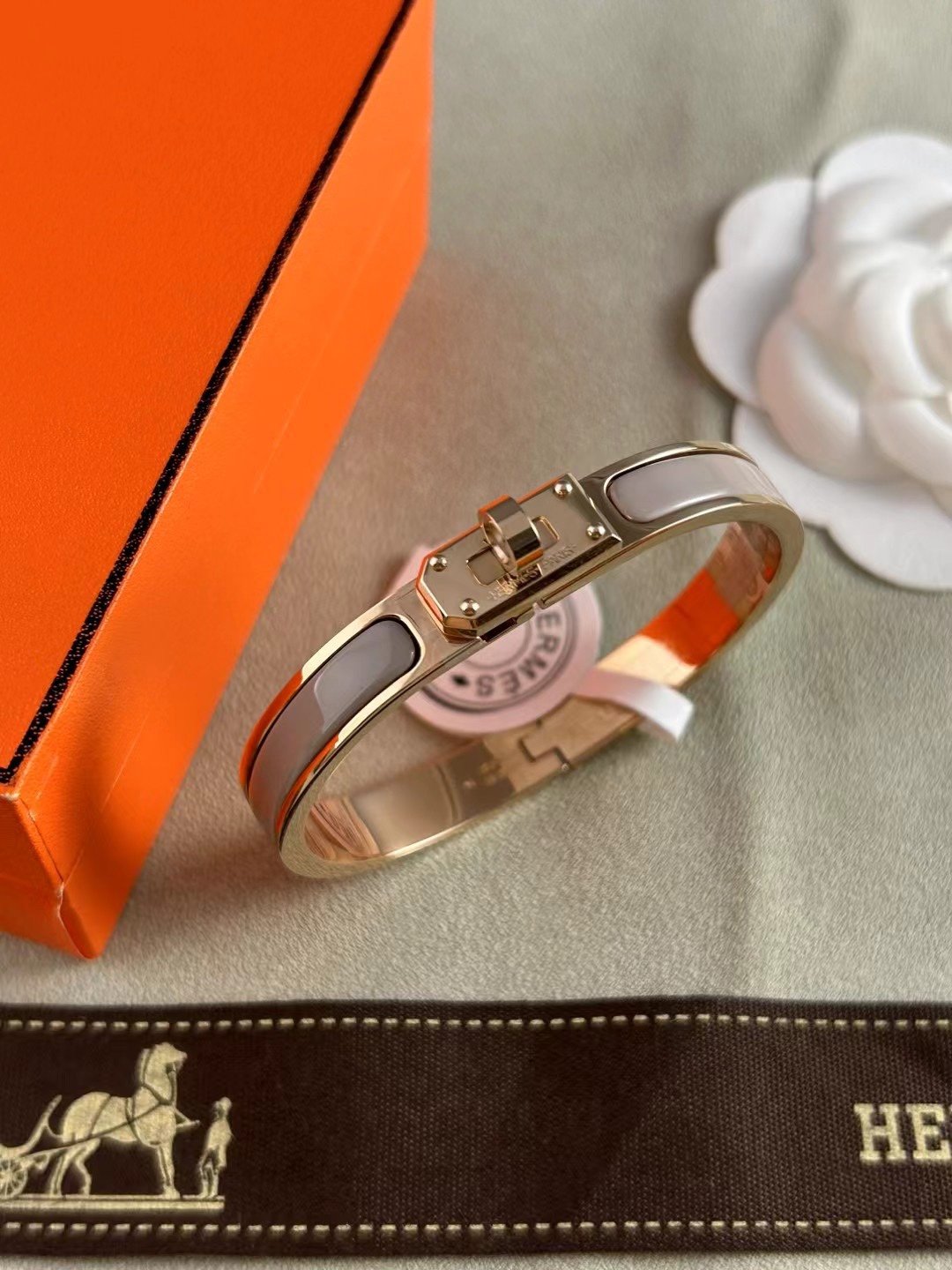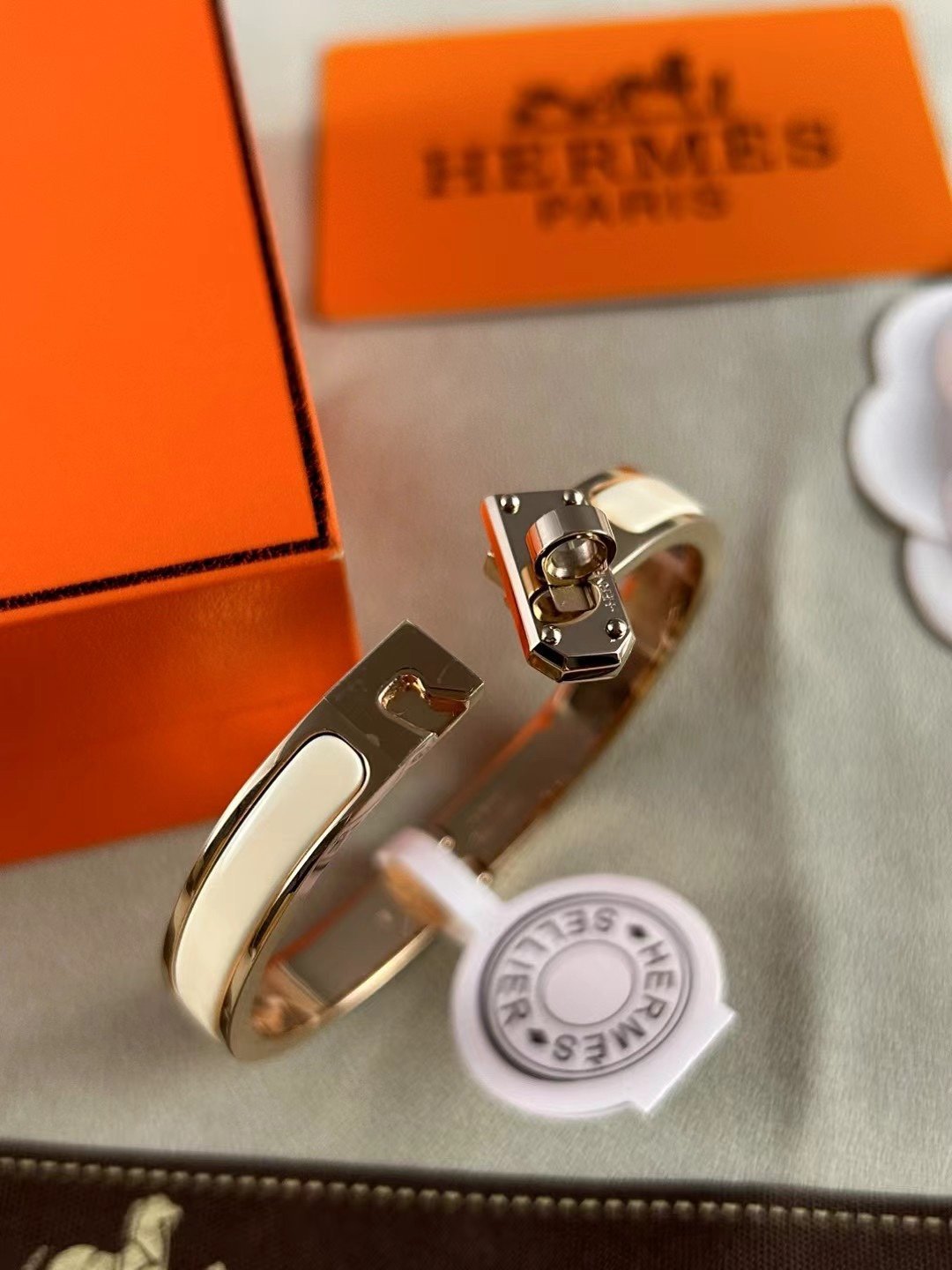This bracelet opens and closes thanks to an ingenious toggle clasp which reveals the iconic Kelly signature.