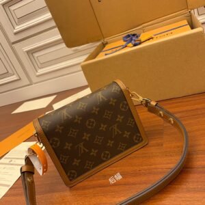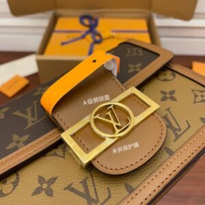 For Spring-Summer 2019 Nicolas Ghesquière unveils a new must-have: the Dauphine Mini handbag. This adorably compact model is crafted from Monogram and Monogram Reverse canvas, trimmed with cowhide-leather. The high-shine LV lock and leather smart strap add a modern twist to this signature piece, which is perfectly sized for day-to-evening wear.