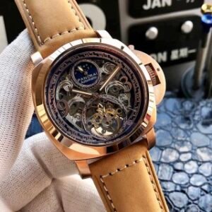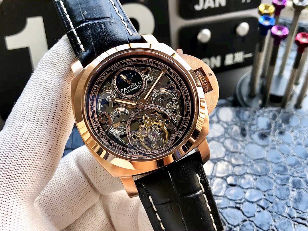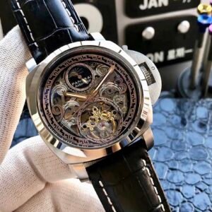 High-end men’s wristwatch, top-grade Shanghai mechanical movement (stable), top-grade 316 stainless steel (durable), high-strength mineral crystal glass (high-definition, wear-resistant), strong three-dimensional design, unique large flywheel design, genuine leather strap, accurate timekeeping, quality guaranteed, diameter 45mm, thickness 14mm! New arrival, screenshots welcome!