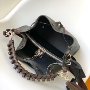 The Muria bucket bag is made from Mahina calf, a perforated leather with a discreet Monogram motif. Supple and sophisticated, it is a pleasure to carry, either by the braided top handle or the long leather strap, which adjusts for short- and long-shoulder or hands-free cross-body wear. Crafted signature details include a name tag and keybell in smooth calfskin.