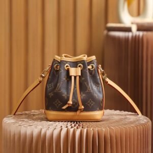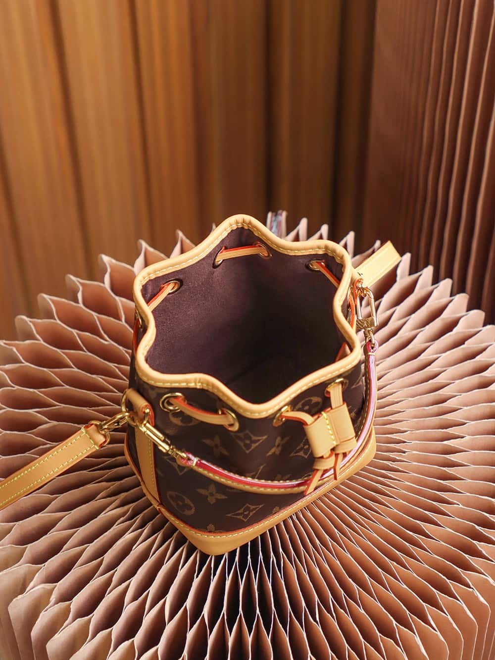 The Nano Noé is a miniature version of the iconic Noé bag, created in 1932. Crafted from Monogram canvas with trim in natural cowhide leather, this tiny Nano Noé combines heritage with modern functionality. Its removable handle and removable, adjustable strap offer multiple carry options, while it is spacious enough to hold essentials including keys, a card holder and a smartphone.