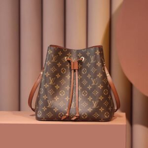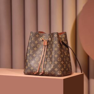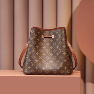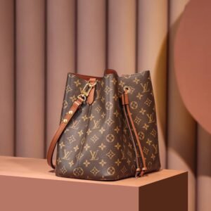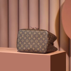 A true House icon, the NéoNoé bucket bag revisits a 1932 design by Gaston-Louis Vuitton. The original was created to transport bottles of Champagne in style; this modern version in Monogram canvas features a sleek shape, colorful leather trim and a matching bonded lining. The adjustable smart strap can be slung over the shoulder or lengthened for a trendy cross-body carry.