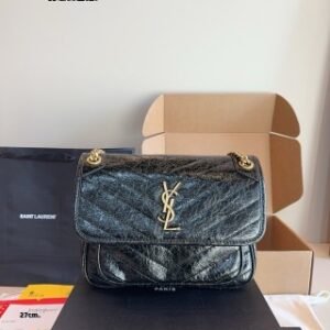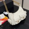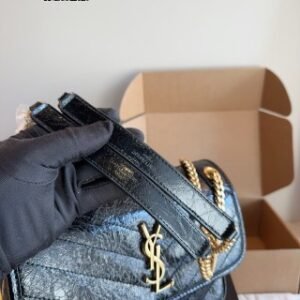 FEATURES A SLIDING CHAIN STRAP THAT CAN BE WORN ON THE SHOULDER OR CROSSBODY.