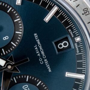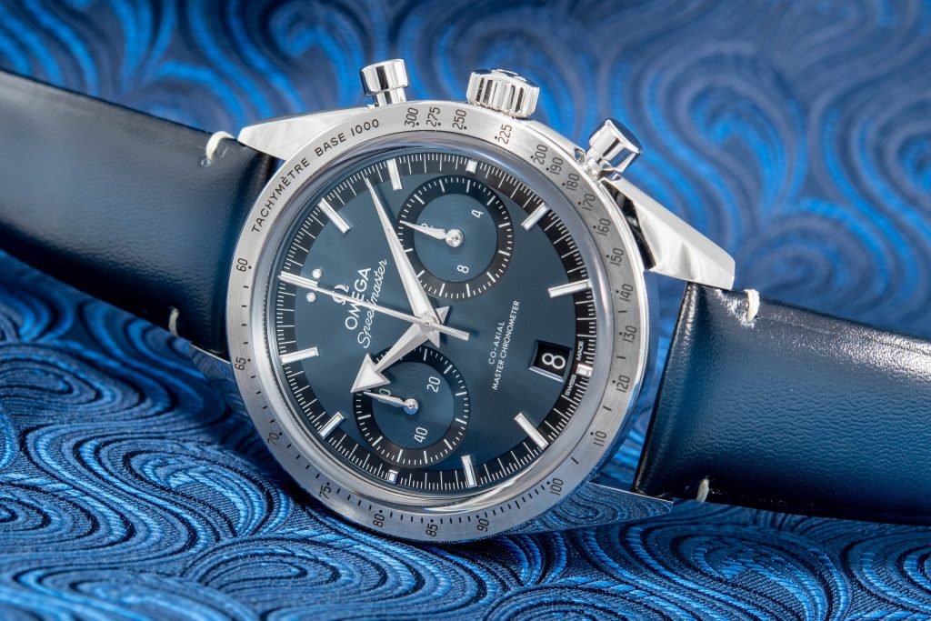 The Speedmaster is one of OMEGA�s most iconic timepieces. Having been a part of all six lunar missions, the timepiece is an impressive representation of the brand�s adventurous pioneering spirit.This 40.50 mm model, inspired by the legendary 1957 original, features a stainless steel case and a blue dial with rhodium-plated hour markers and �Broad Arrow� hands – all featuring white Super-LumiNova. There is a date window at 6 o�clock, a small seconds subdial at 9 o�clock, and 12-hour and 60-minute chronograph recorders on the subdial at 3 o�clock.The brushed bezel includes a blackened tachymeter scale, while on the caseback, there is a �Speedmaster �57� engraving as well as a flat sapphire crystal with an anti-reflective treatment inside.The watch is presented on a blue leather strap with an OMEGA logo in postive relief on the buckle, and is driven by the manual-winding OMEGA Co-Axial Master Chronometer Calibre 9906.