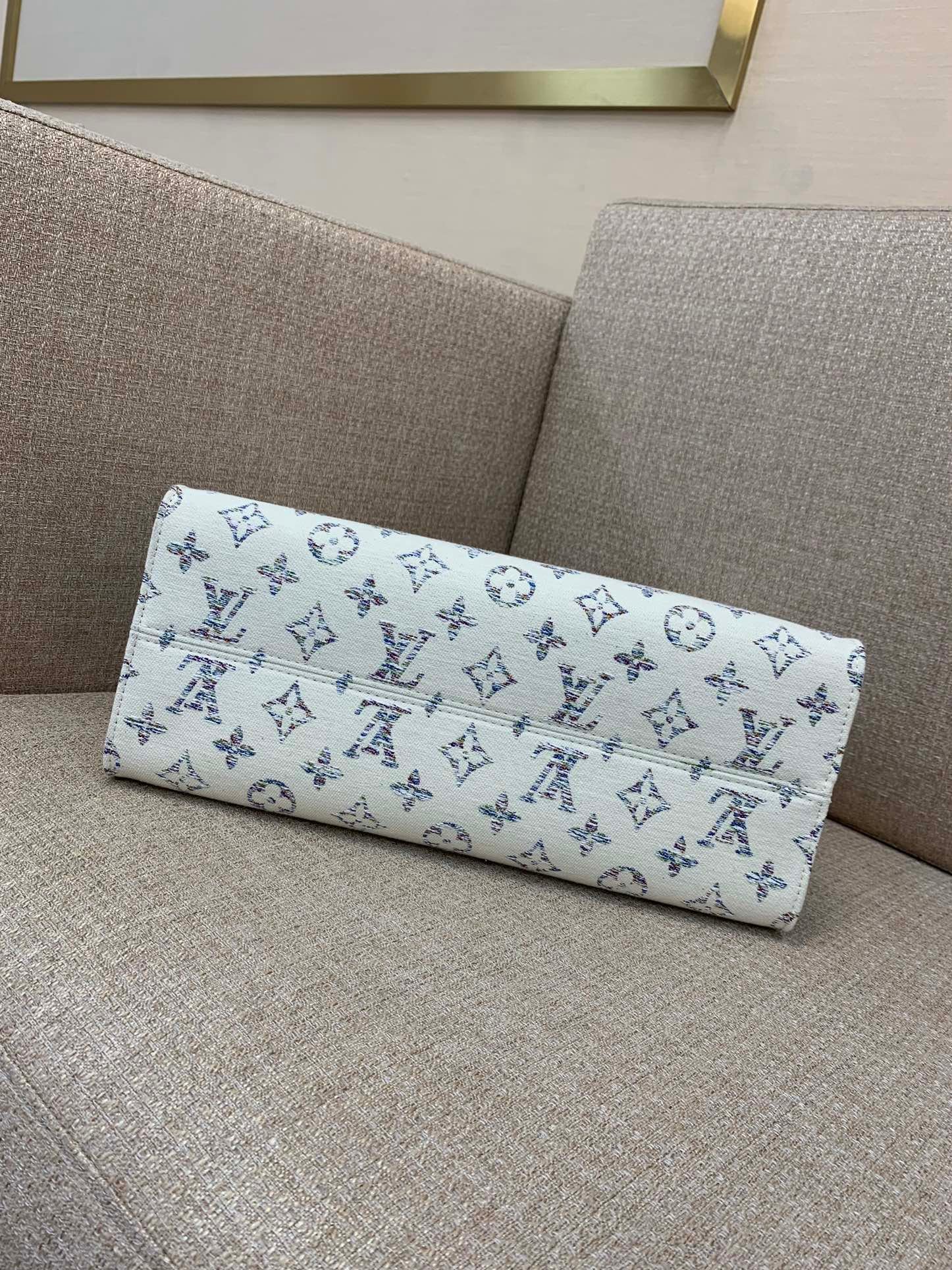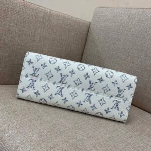 Part of the Nautical capsule, this OnTheGo MM is made from Monogram jacquard fabric, created with 66 different colored threads for a Monogram with a soft gradient of color. To ensure durability, the fabric is treated with an invisible protective coating. Each model comes with a laser-engraved mirror charm for on-the-go touch-ups.