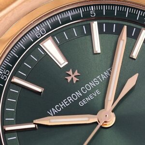 Dial descriptionIntense green-lacquered dial, sunburst satin-finished base and velvet-finished minutes track. Date at 3 o’clock. 18K gold applied hour/minute hands and hour-markers highlighted with blue SuperLuminova®.