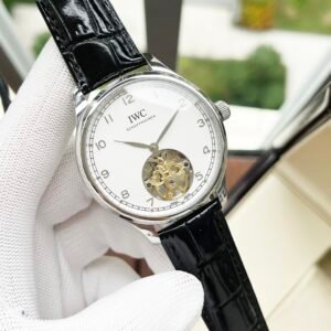 The Portugieser Hand-Wound Tourbillon combines timeless modern Portugieser design with a flying minute tourbillon at 6 o’clock.
