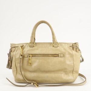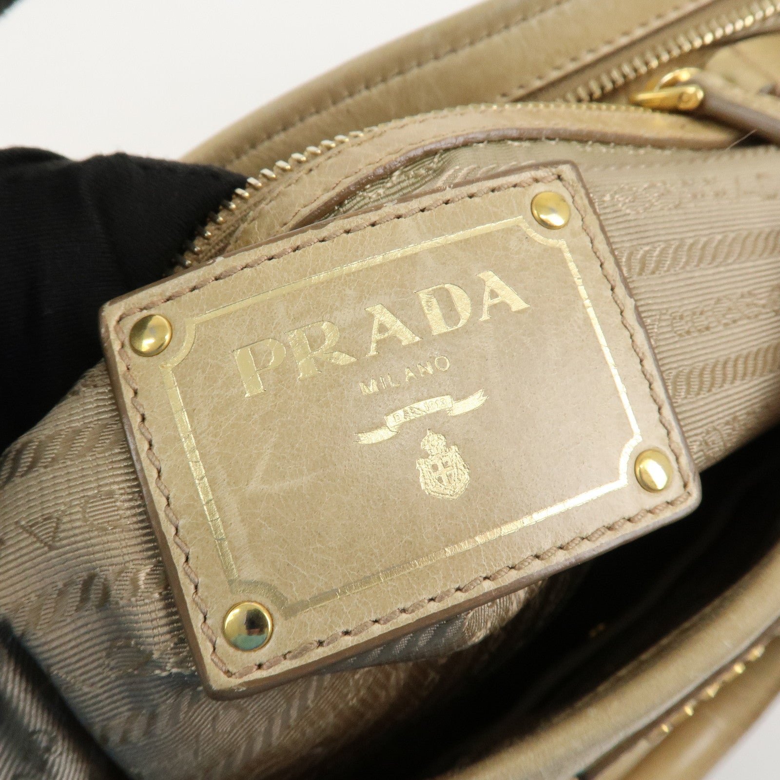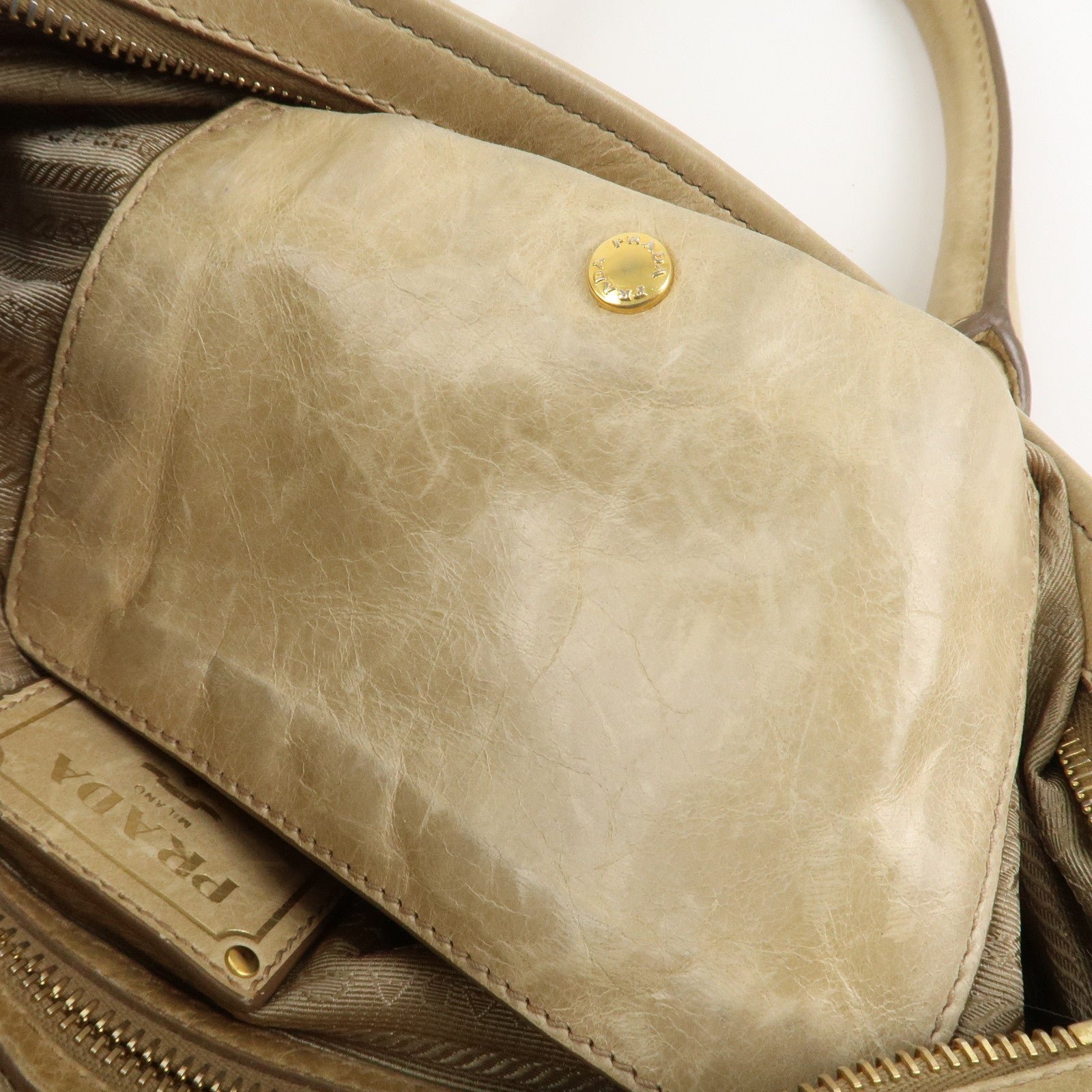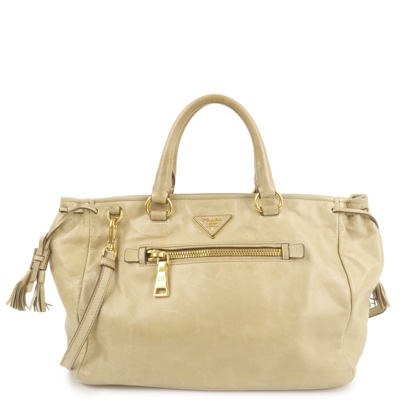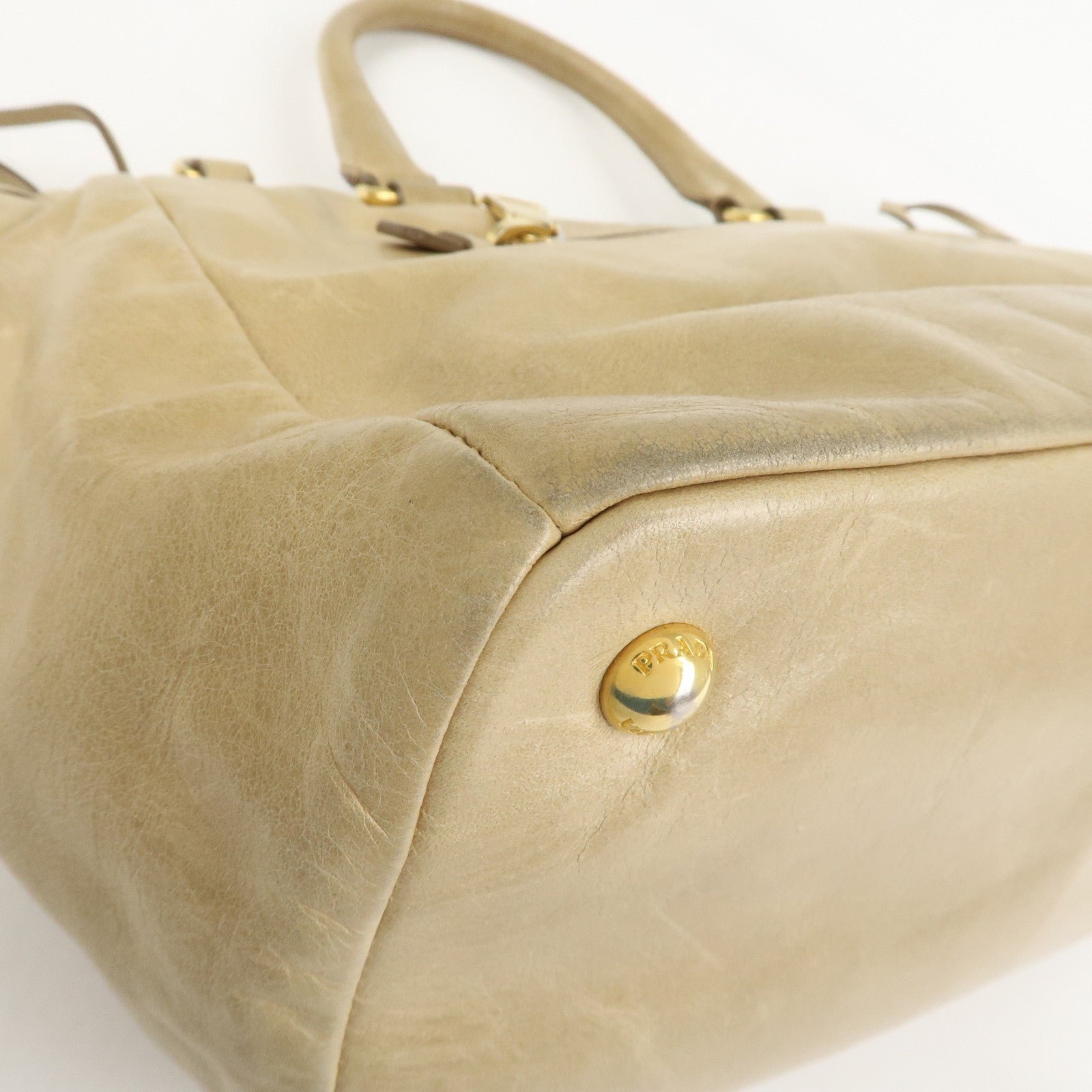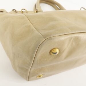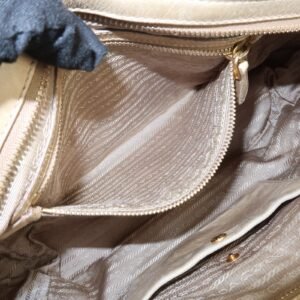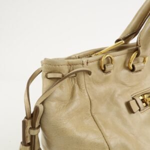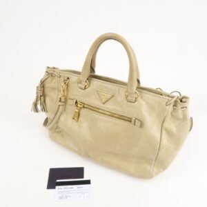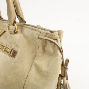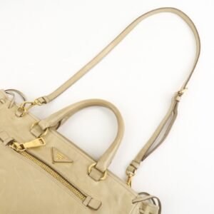PRADA Triangle Logo VITELLOSHINE Leather 2Way Bag Beige BN1921
