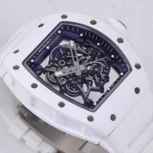 At the heart of the RM055 White Bubba Watson lies the Calibre RMUL2, a skeletonized manual winding movement with a power reserve of 55 hours. It offers various functions, including hours, minutes, and seconds display. Water-resistant up to 30 meters, this timepiece is as reliable as it is stylish.