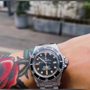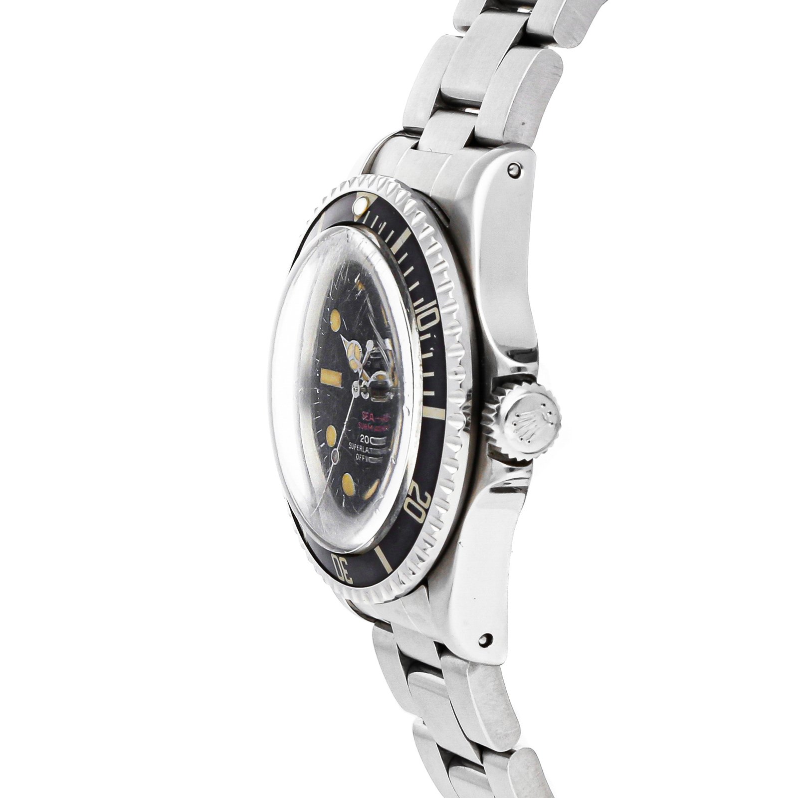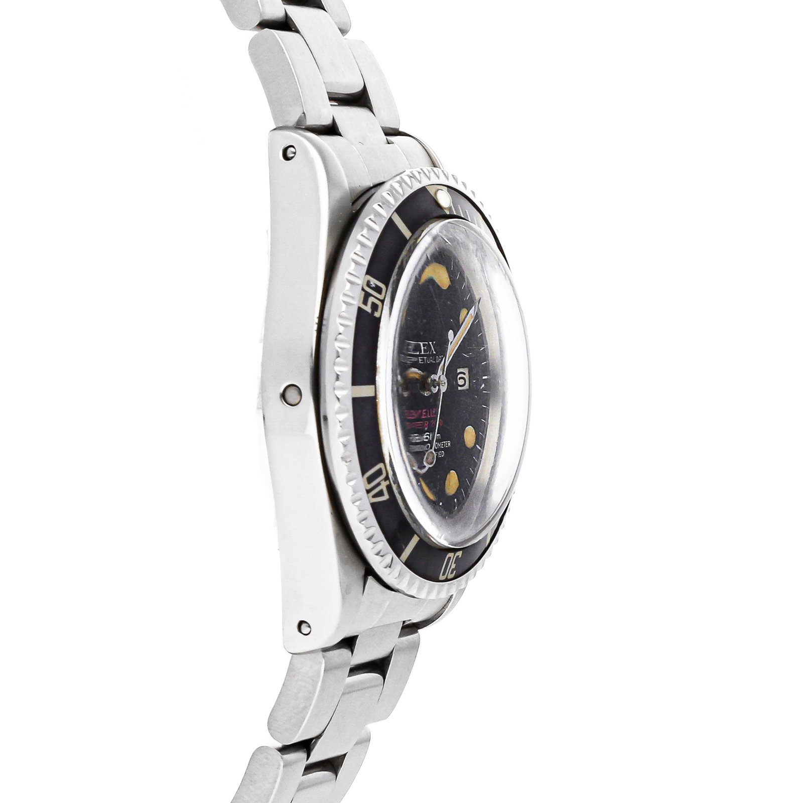 Pre-Owned Rolex Sea-Dweller Submariner Double Red (1665) self-winding automatic watch, features a 40mm stainless steel case surrounding a black dial on a stainless steel Oyster bracelet with folding buckle. Functions include hours, minutes, seconds and date. 1.7 Million Serial. This watch does not come with box or papers.We back this watch with a 2-Year WatchBox warranty!