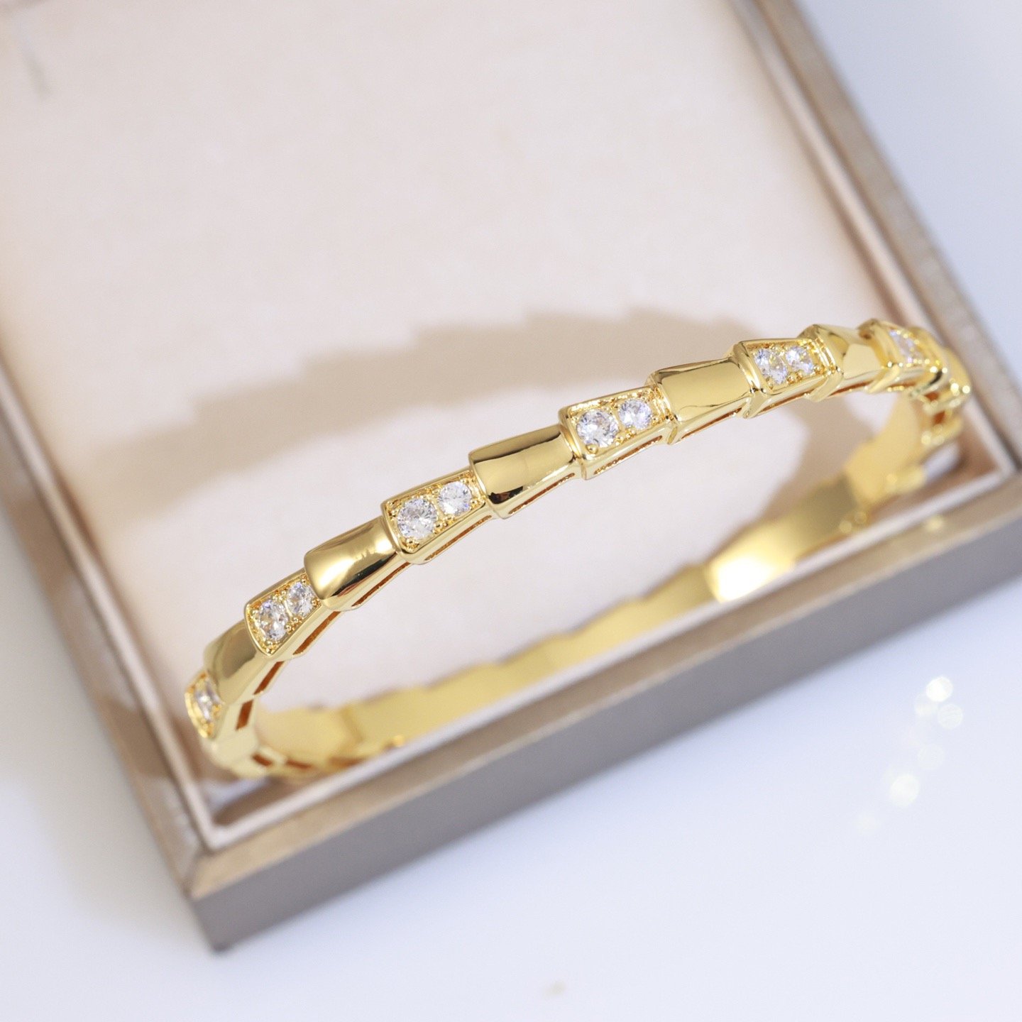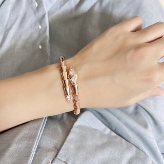 With its signature blend of pure aesthetics, enveloping shapes and charismatic flair, the Serpenti Viper 18 kt rose gold bracelet with demi pavé diamonds is an essential interpretation of Bvlgari’s icon of endless metamorphosis. Capturing the powerful and ever-evolving nature of the mythical serpent, the magnetic jewelry creation inspires us to embrace change as a source of strength and self-confidence. Easy to mix and match, the bracelet offers endless styling options, embodying the collection’s versatile spirit.