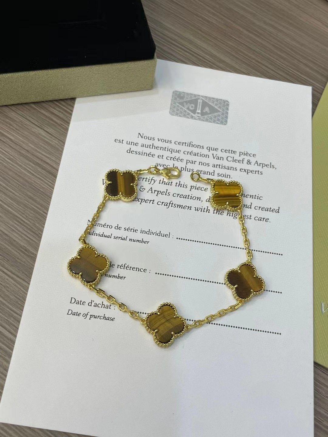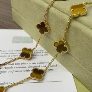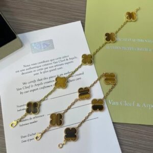 Vintage Alhambra bracelet, 5 motifs, 18K yellow gold, tiger’s eye.
