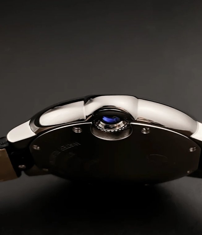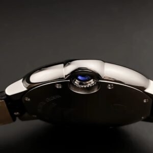 Floating like a balloon and as blue as the cabochon safely nestled in its side, the Ballon Bleu watch by Cartier adds a dash of elegance to male and female wrists alike. Roman numerals are guided on their path by a deep blue winding mechanism. The convex curves of the case, guilloche dial, sword-shaped hands, and polished or satin-finish links of the bracelet ensure that the Ballon Bleu watch by Cartier floats within the world of Cartier watchmaking.